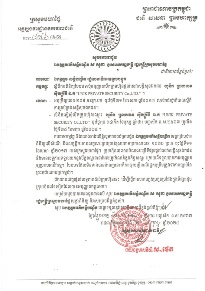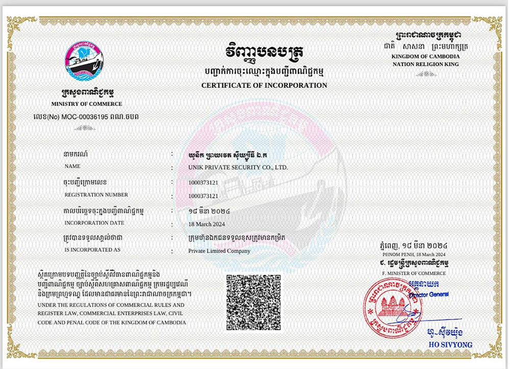 UNIK was established in 2024 as a premier security provider, approved by both the Ministry of Interior and the Ministry of Commerce, to deliver exceptional private civil security services in Cambodia.